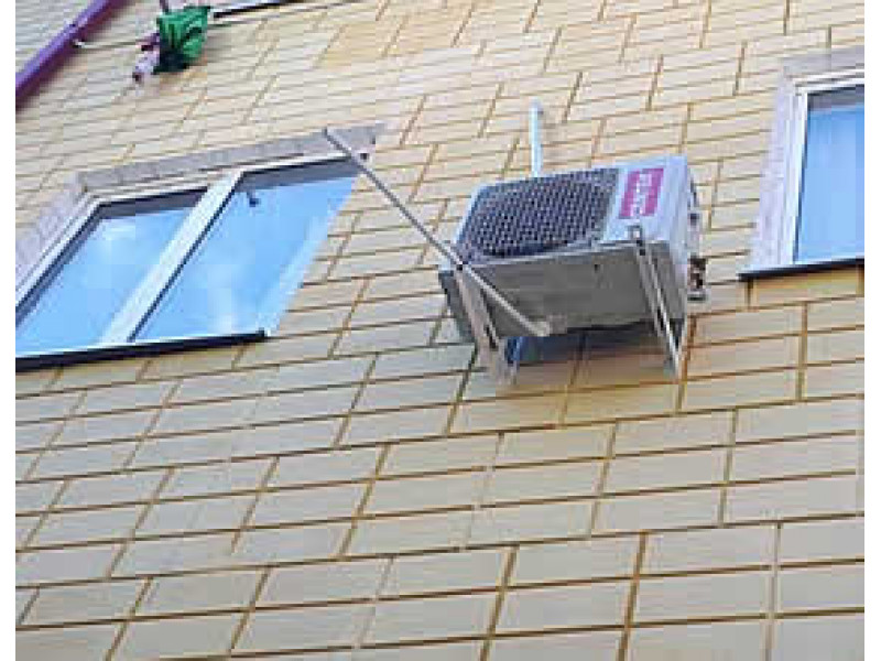 На месте выяснилось, что внешний блок необходимо крепить на уровне 3 этажа. Ни одна лестница не доставала до нужной высоты.