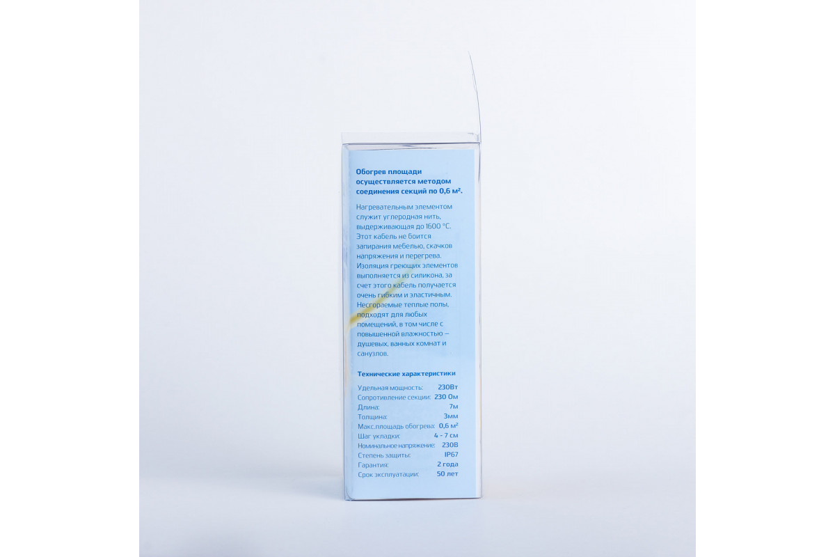 Удельная мощность 230 Вт/м² обеспечивает быстрый нагрев поверхности при оптимальном энергопотреблении.Это позволяет снизить затраты на отопление без ущерба для комфорта.