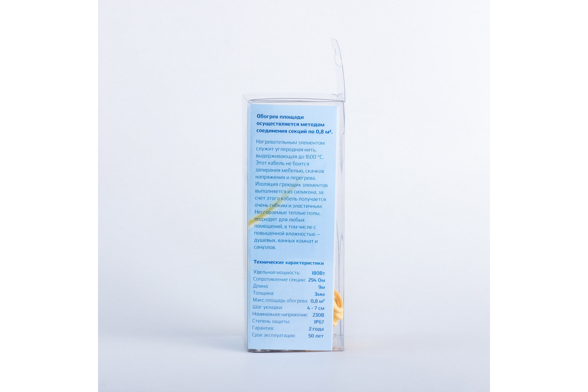 Ключевым преимуществом этой модели является её надёжность и безопасность: использование углеродной нити в качестве греющего элемента и силиконовой изоляции обеспечивает устойчивость к перегреву и механическим повреждениям. Это делает тёплый пол РиМ 180Вт идеальным выбором для создания комфортных условий в вашем доме или офисе.