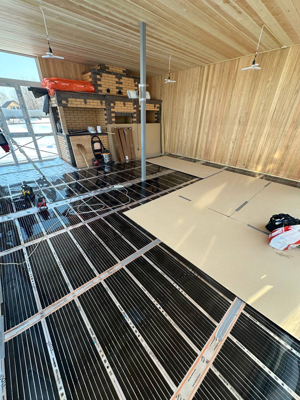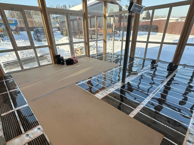 Термоплёнка саморегулирующаяся Marpe "Самрег" РТС 30% – инновационный материал, обеспечивающий равномерный и экономичный обогрев. Для удобства монтажа использовались плёнки разной ширины и длины.