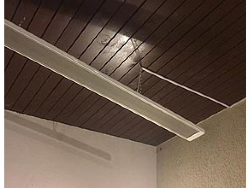 По итогам осмотра объекта и выяснения пожеланий заказчика, было решено использовать электрические потолочные ик обогреватели Алмак. Теплорасчет показал, что для этого потребуется три прибора мощностью по 1.5 Квт. Они были подвешены так, чтобы было тепло в любом месте лоджии.