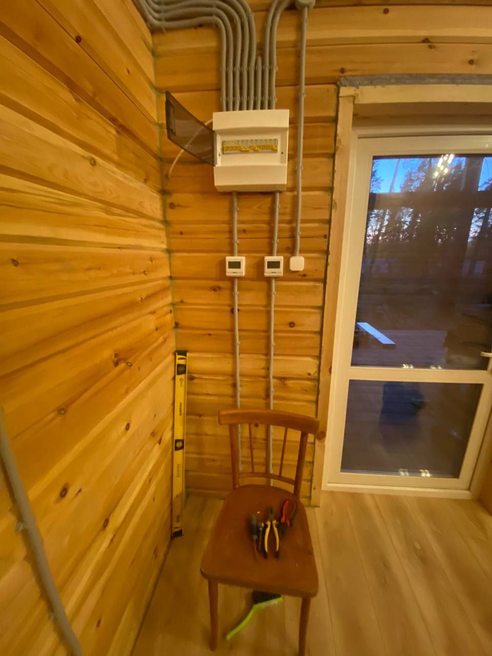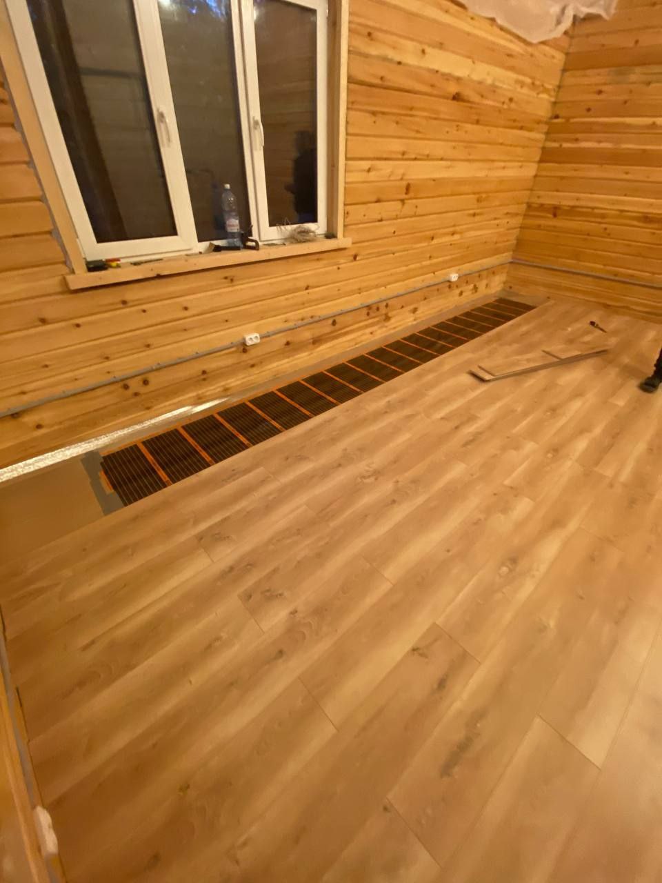 Для управления всем тёплым полом установили Терморегуляторы Е 51 с Wi-Fi, очень удобно дистанционно запускать в работу тёплый пол и обогрев дома, когда собираешься выезжать туда на отдых в холодное время года. Завершили монтаж укладкой ламината, и выполнили объект «под ключ».