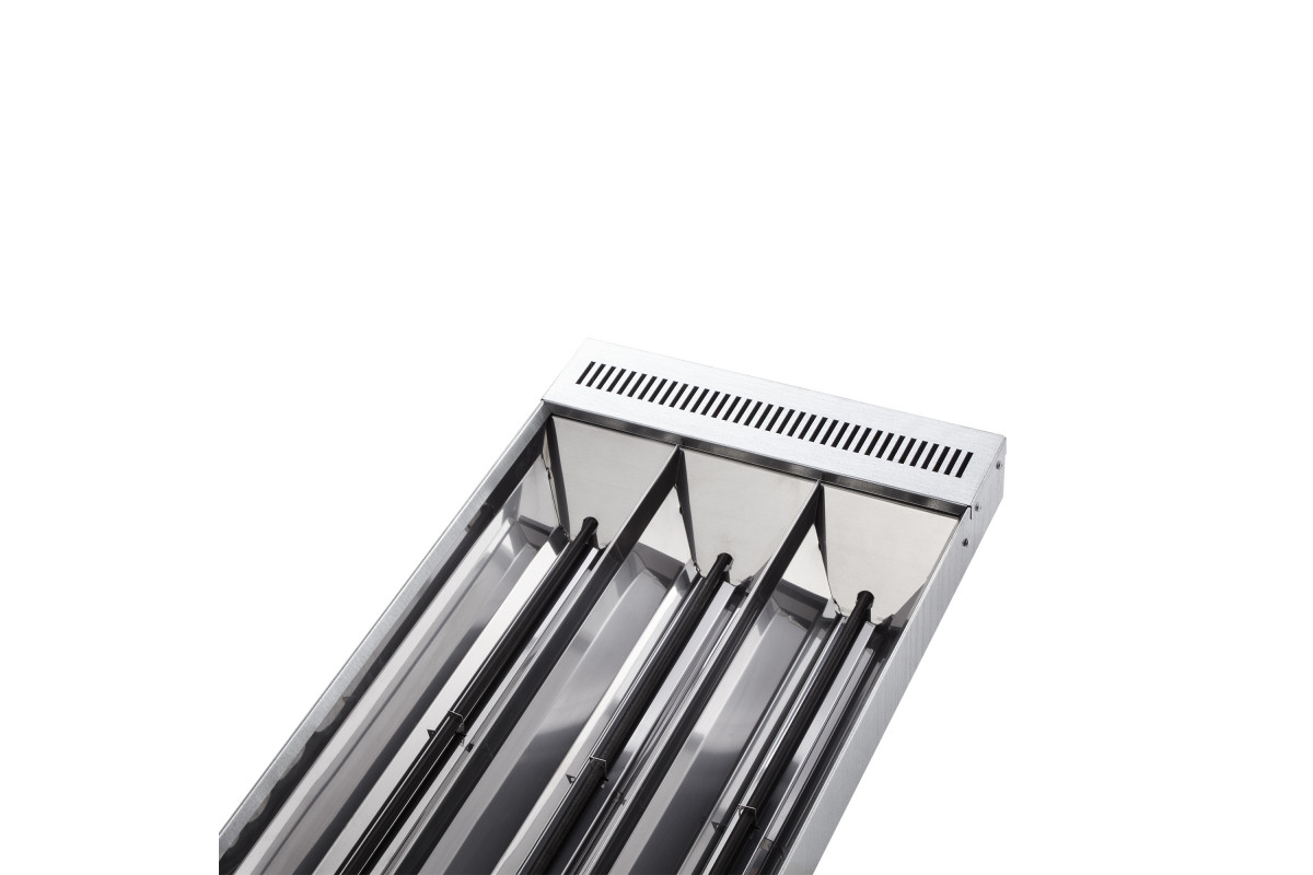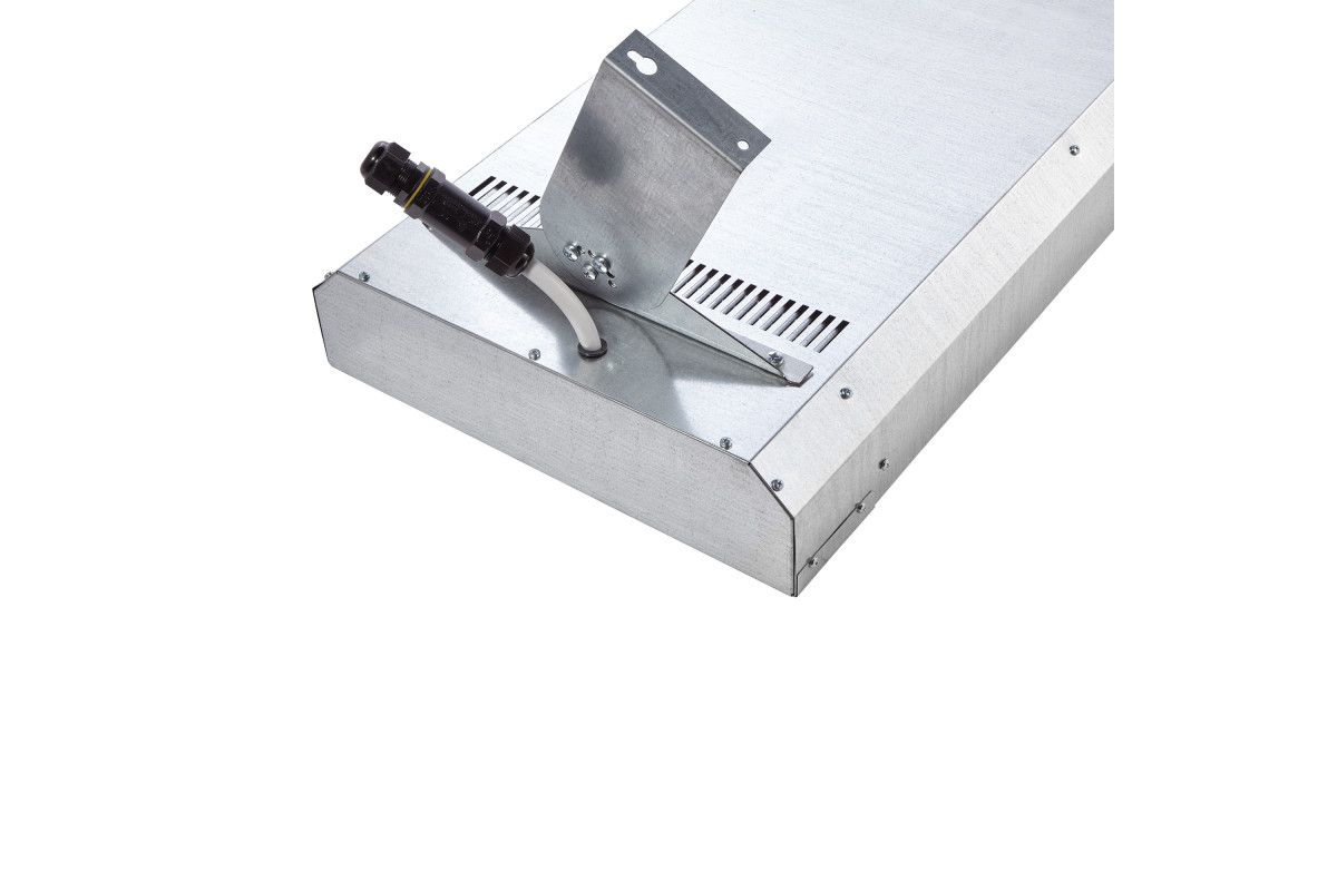 Модель оснащается уникальными параболическими отражателями для создания направленного сфокусированного теплового потока и обеспечения эффективного локального обогрева. Нагревательными элементами служат высокотемпературные ТЭНы с оболочкой из спецсплава Incoloy® с высоким содержанием никеля и титана для долговременной эксплуатации в тяжелых условиях. Обогреватель имеет высокую степень пылевлагозащиты IP54 и может применяться во влажных помещениях и на открытом воздухе. В комплект входит многофункциональный поворотный кронштейн, позволяющий установку обогревателей на потолок или стену под углом для равномерного обогрева с разных сторон.