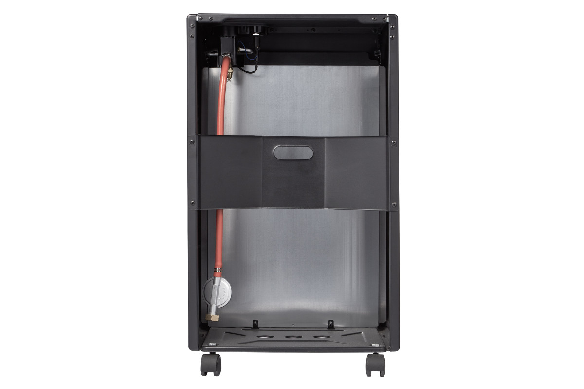 Прибор функционирует в трех режимах мощности, обогревая помещения площадью до 60 м². Бесперебойная работа на протяжении многих лет достигается благодаря многоуровневой системе безопасности, в которую входит: защитная термопара для контроля пламени, датчики аварийного отключения при опрокидывании и превышении уровня углекислого газа. Кроме того, специальный фиксатор предотвращает случайное выпадение баллона при перемещении прибора.