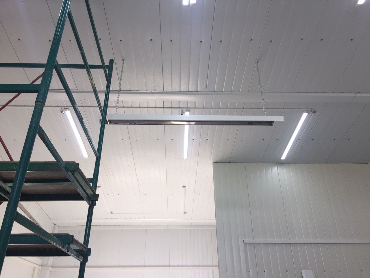 Для обогрева бедующего склада для производства быстровозводимых домов нужен был обогрев. Приехав на объект и осмотрев помещение, было решение повесить потолочные промышленные обогреватели. В данное время в помещении все установлено. Ещё один наш клиент полностью готов к зиме.