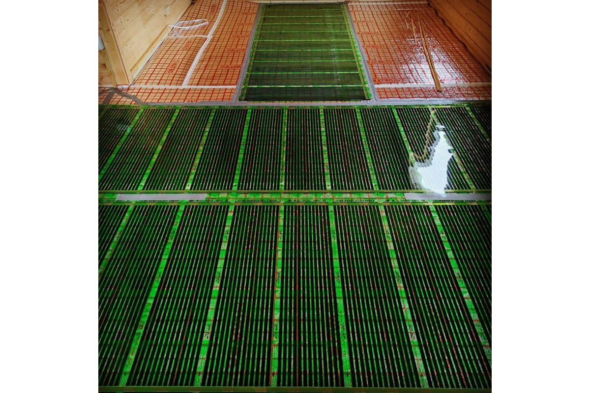 Материал инфракрасной отопительной пленки – электроизоляционный полиэстер, карбоно-углеродная паста CNT, медные токопроводящие шины, выполненные из 100% меди, сплошная серебряная паста, нанесенная в виде полосы.