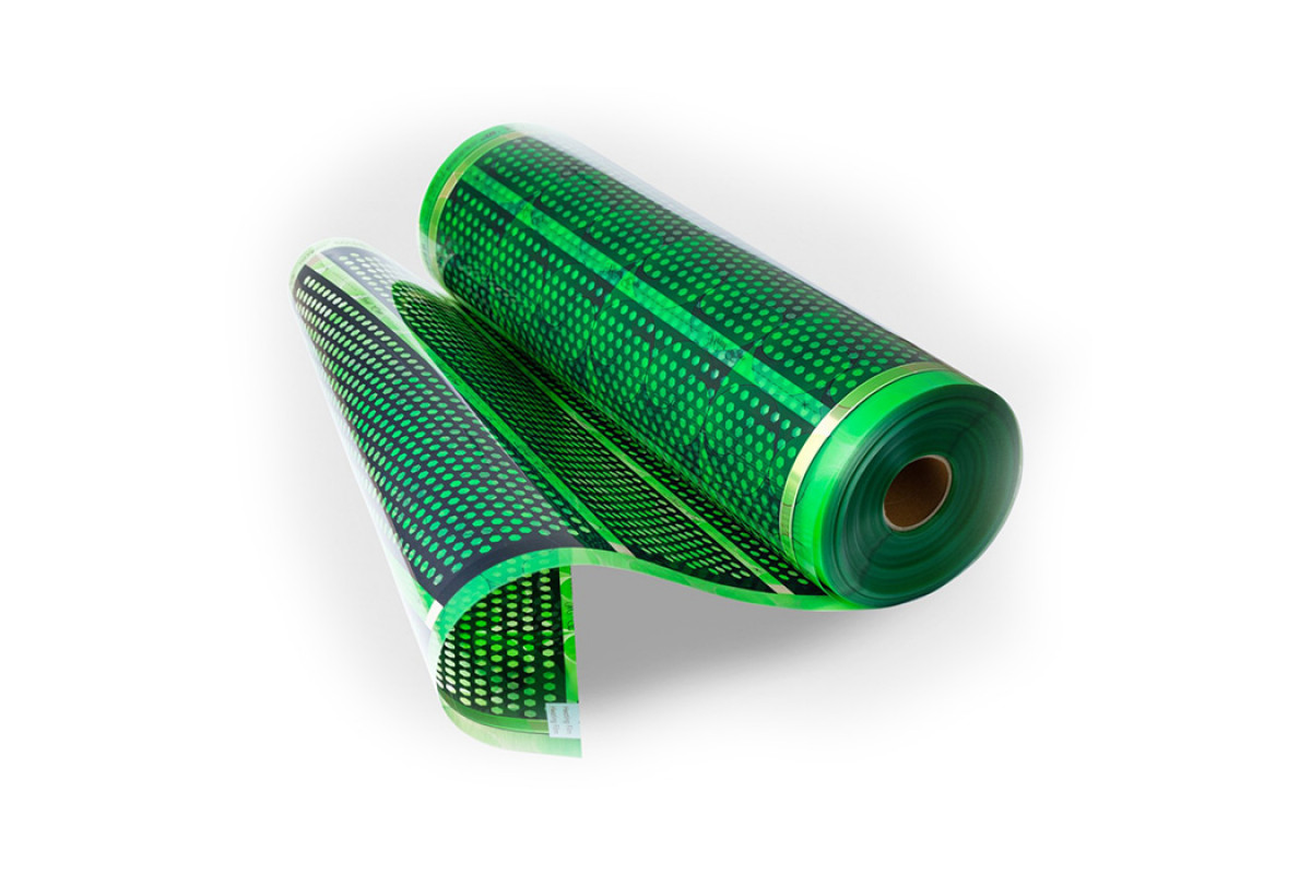 В состав пленки добавлены специальные примеси, позволяющие распределять нагрев за более короткое время и соответственно, экономить электроэнергию. Цвет полотна пленки – светло зеленый.