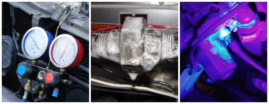 Наиболее часто для обнаружения места утечки хладагента требуется использовать несколько методов, поскольку разрыв может произойти в любой части системы. Контур системы должен быть под давлением, если это необходимо для метода обнаружения утечки. Азот и УФ-красители не повредят хладагенту и системе кондиционирования. Необходимо быть крайне осторожными при использовании методов поиска утечки, которые требуют увеличения давления в контуре, поскольку это потенциально опасно. Лучше всего обратиться к квалифицированным специалистам для обнаружения утечки, которые могут быстро и качественно выполнить все необходимые работы.