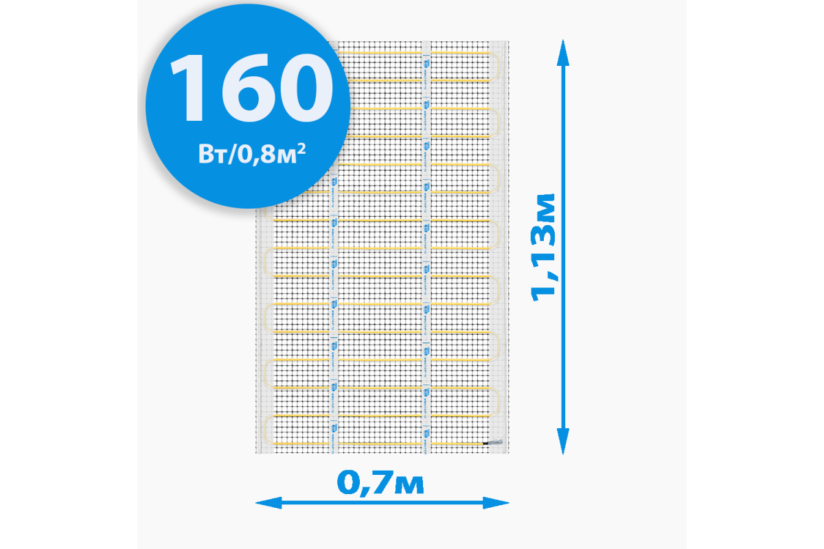 Секции тёплого пола РИМ MEDIUM-70 - 160Вт/0,8м² на отрез — это универсальное решение для создания комфортного и эффективного обогрева в жилых и коммерческих помещениях. Благодаря своей конструкции и техническим характеристикам, данный нагревательный мат идеально подходит для укладки под плитку, керамогранит, ламинат и другие напольные покрытия.
