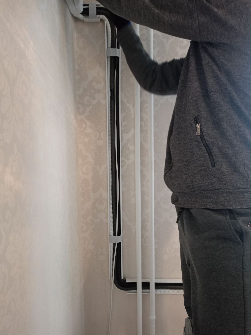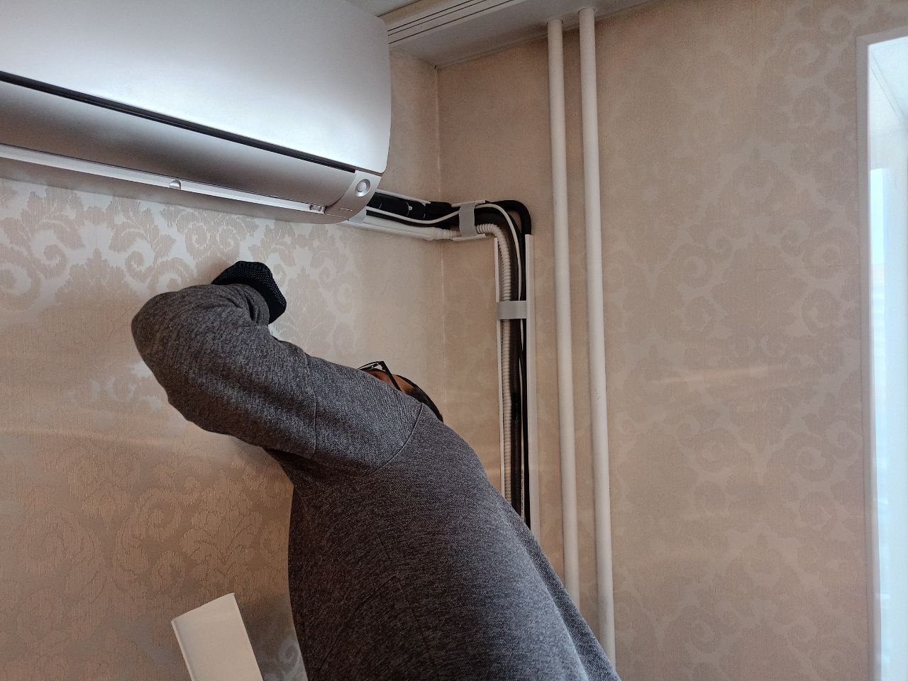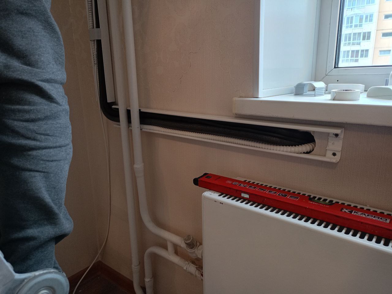 3. Установка трубопроводов и электропроводки. Для надежного соединения внутреннего и внешнего блоков используется качественная медная труба и специальная изоляция, предотвращающая потери холода.