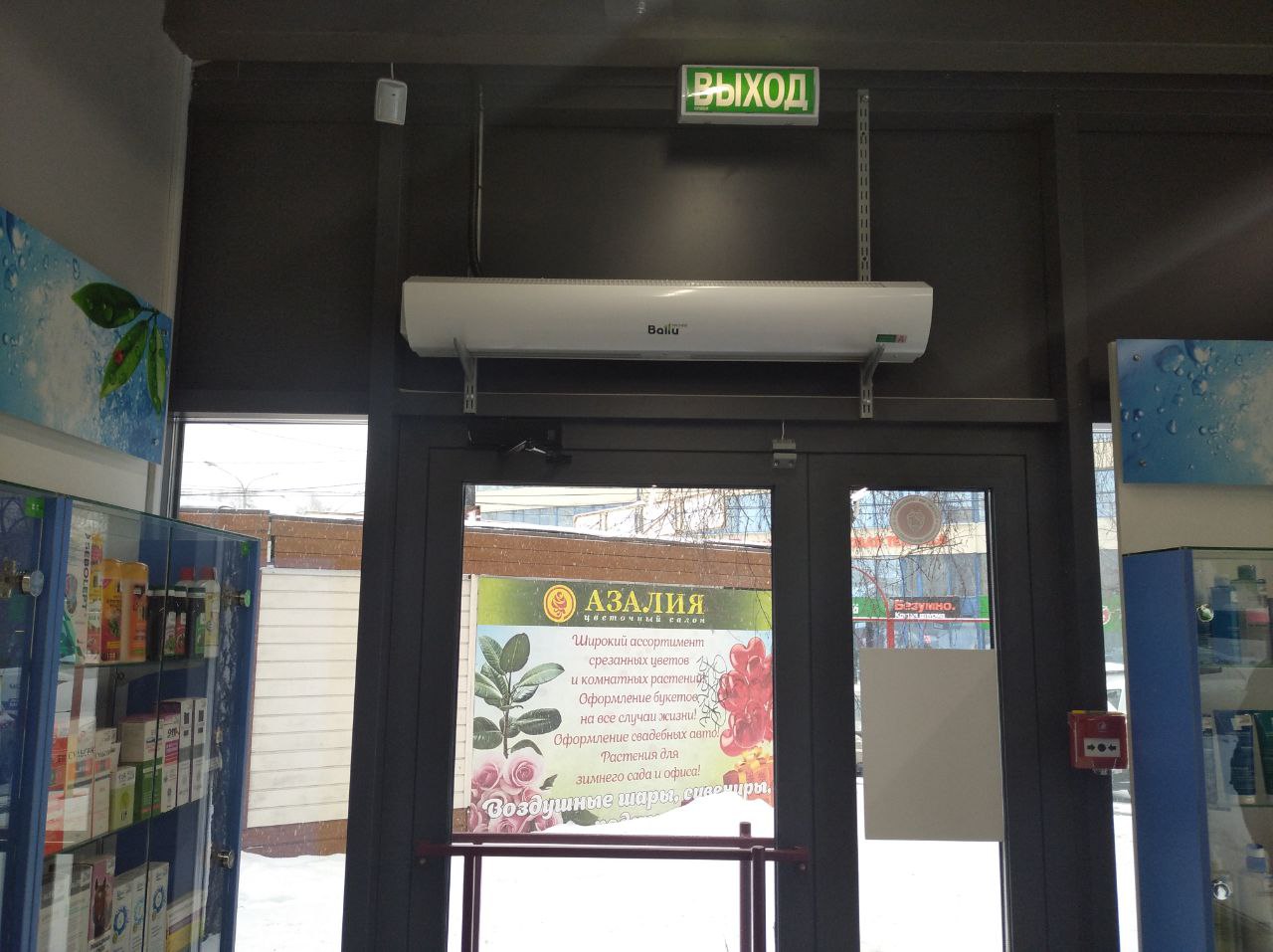 Работы по монтажу тепловой завесы были выполнены профессиональной командой штатных электриков аптеки «Лека» — Дмитрием и Евгением. Благодаря их опыту и вниманию к деталям удалось: