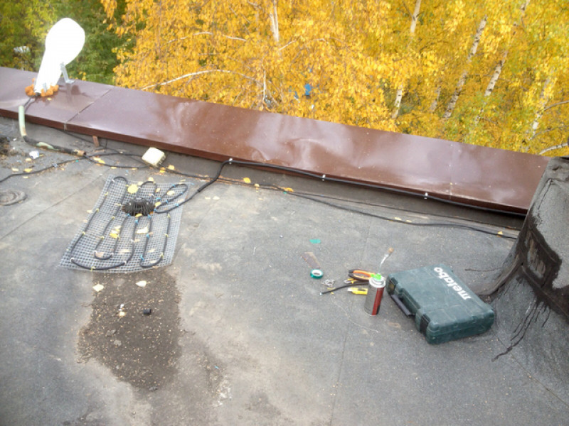 С учетом климатических условий Новосибирска, система была выполнена на основе саморегулирующегося греющего кабеля производства Южная Корея. Кабель заложен мощностью 40Вт на погонный метр. Важным аспектом в выборе нагревательного кабеля на крышу служит наличие оплетки с защитой от ультрафиолетового воздействия. Зачастую,недобросовестные продавцы позволяют себе использовать греющие кабели с покрытием из обычного ПВХ, снижая тем самым стоимость. Но подобная «экономия» приводит к очень быстрому выходу кабеля из строя. Этот нюанс нужно обязательно учитывать.