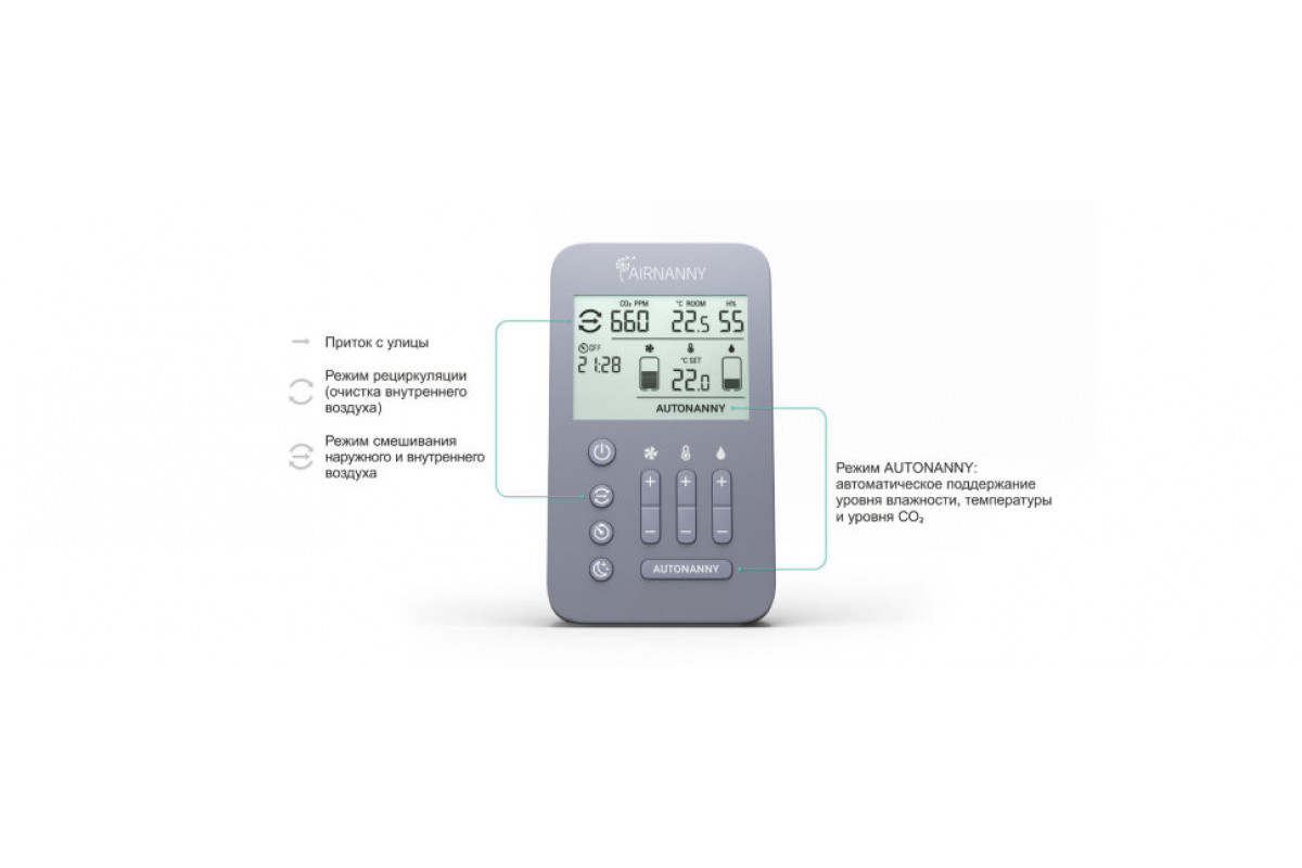 Станция AirControl анализирует качество воздуха в помещении и регулирует работу установки автоматически.