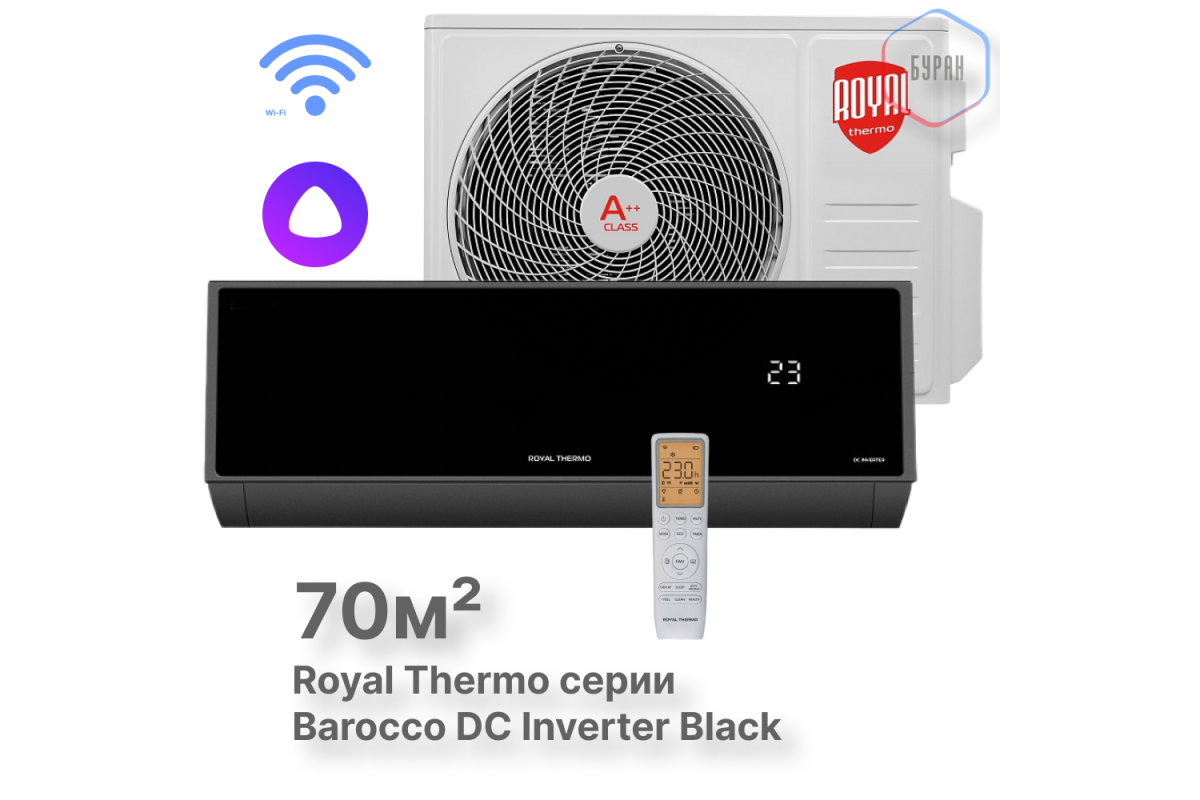 Сплит-система инверторного типа Royal Thermo Barocco DC RTBI-24HN8_V2/black комплект — это идеальный выбор для тех, кто ценит комфорт, стиль и технологичность. Он обеспечит оптимальный микроклимат в вашем помещении в любое время года. Подарите себе и своим близким уют и свежесть каждый день! 😊