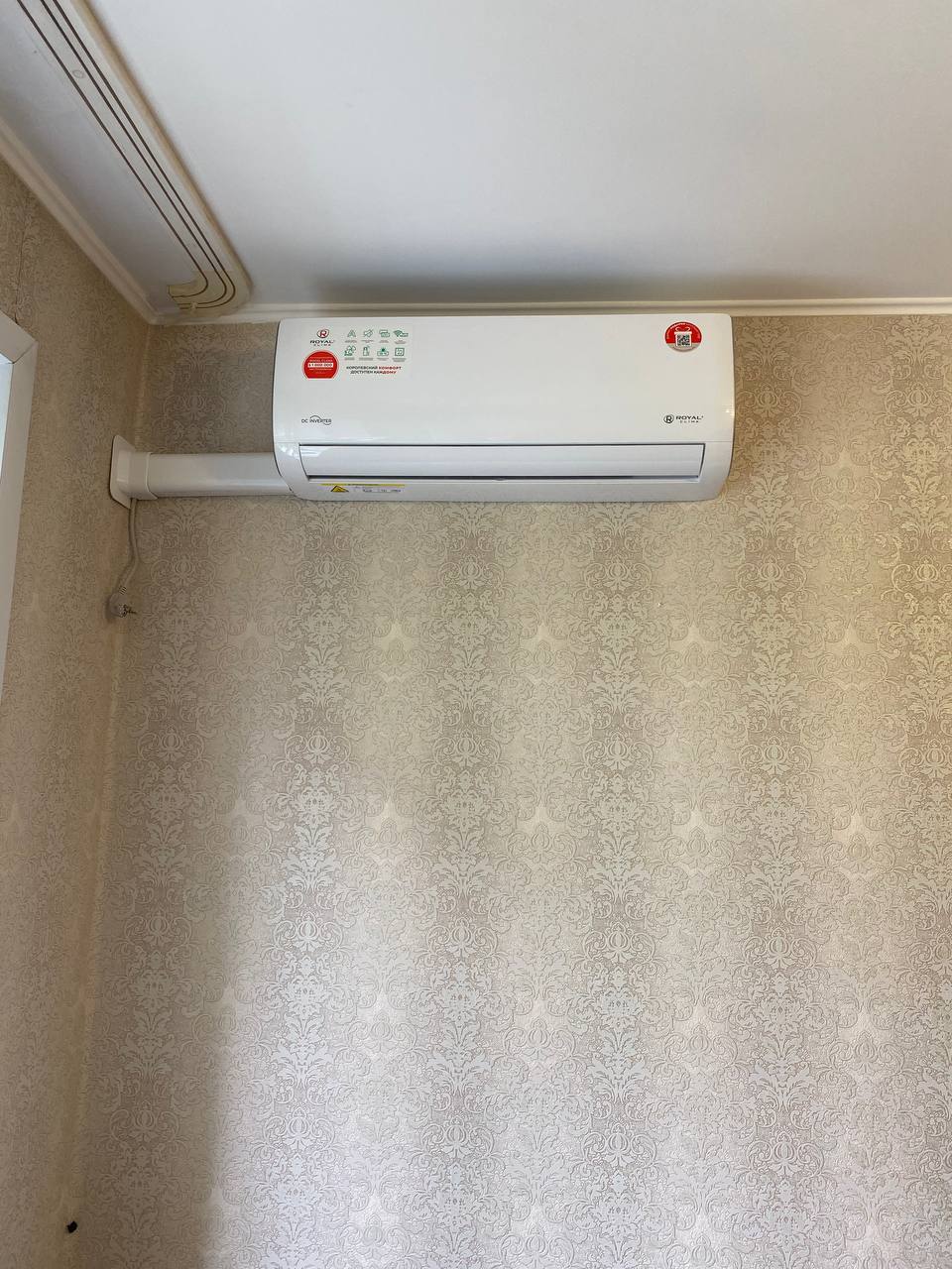 Внутренний блок кондиционера Royal Clima был установлен на стене в гостиной, обеспечивая равномерное распределение прохладного воздуха по всей комнате. Монтажники аккуратно закрепили блок, используя специальные крепежные элементы, обеспечивающие надежность и долговечность конструкции.