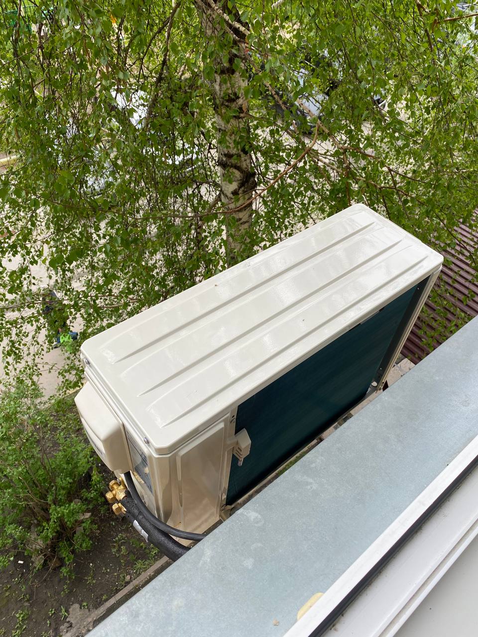 Внешний блок был установлен на специальной металлической конструкции под окном. Это место было выбрано не случайно — открытое пространство обеспечивает хорошую вентиляцию и удобный доступ для обслуживания устройства. Внешний блок был надежно закреплен, чтобы избежать вибраций и шумов при работе.