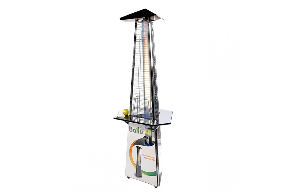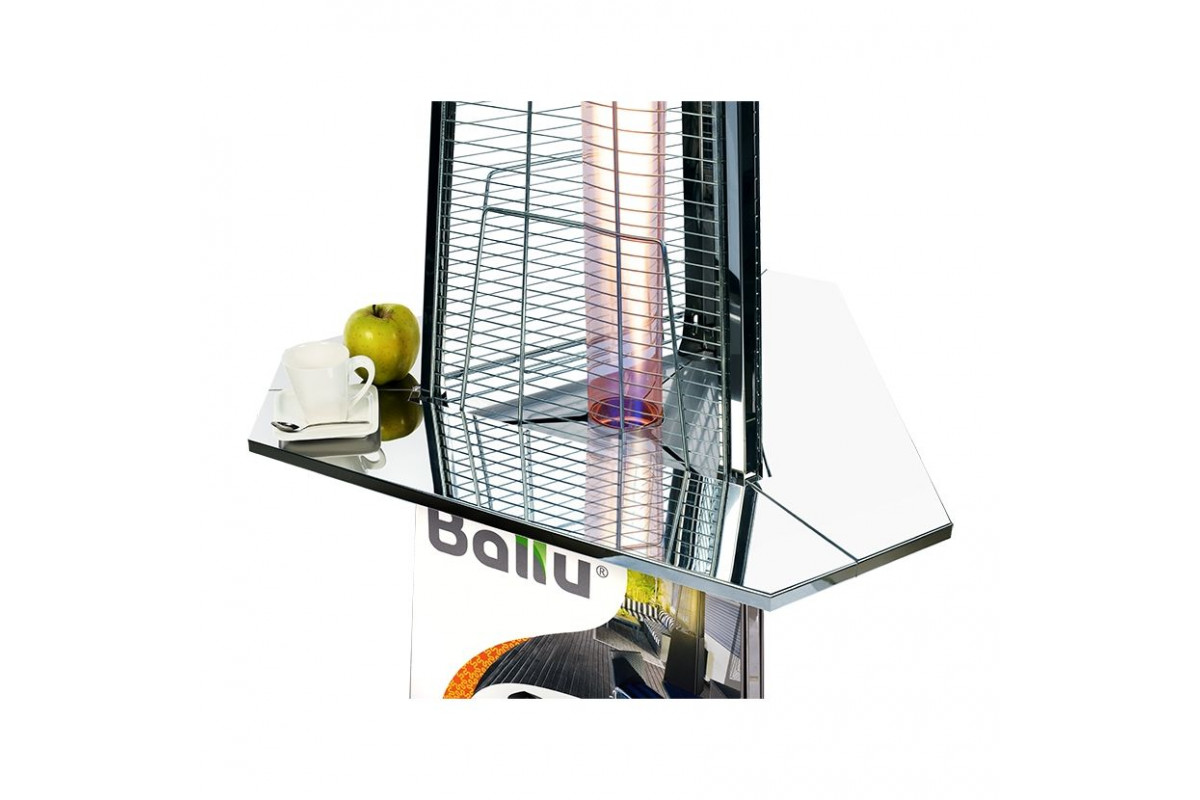Столик разработан инженерами Ballu с учётом всех особенностей использования уличных обогревателей на летних верандах ресторанов и в уличных кафе.