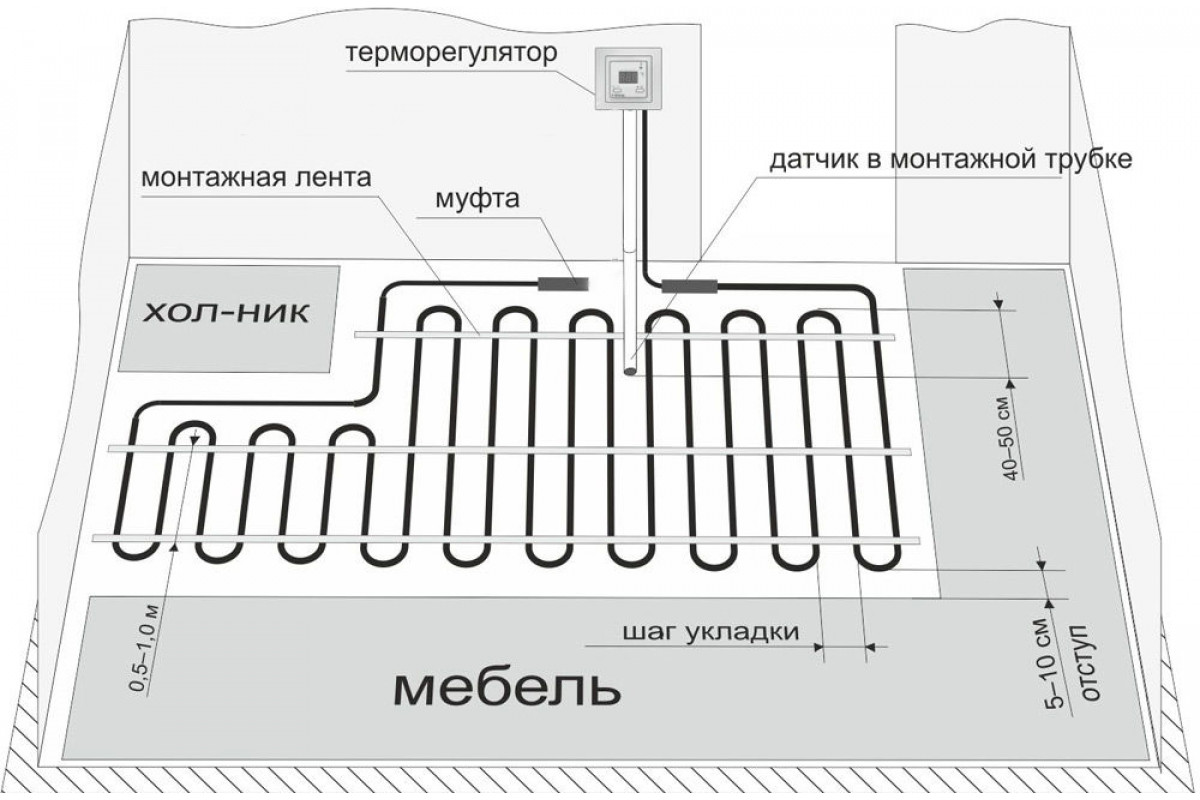 Для эффективной работы системы рекомендуется использовать терморегулятор с датчиком температуры пола.Это позволит точно контролировать уровень нагрева и экономить электроэнергию.​