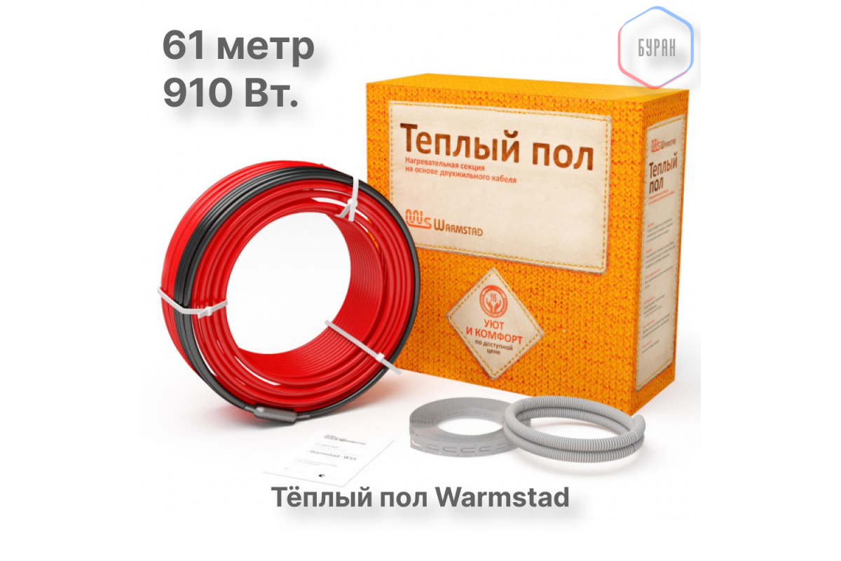 Теплый пол кабельный (Теплолюкс) Warmstad WSS 61 м 910 Вт (5,1-6.1 кв.м.) — это надёжное и эффективное решение для создания комфортного микроклимата в вашем доме. Его простота монтажа, высокая надёжность и энергоэффективность делают его отличным выбором для обогрева помещений с различными типами напольных покрытий. Приобретая этот нагревательный мат в нашем интернет-магазине, вы получаете качественный продукт с гарантией от производителя и возможность консультации по всем вопросам, связанным с установкой и эксплуатацией системы.​
