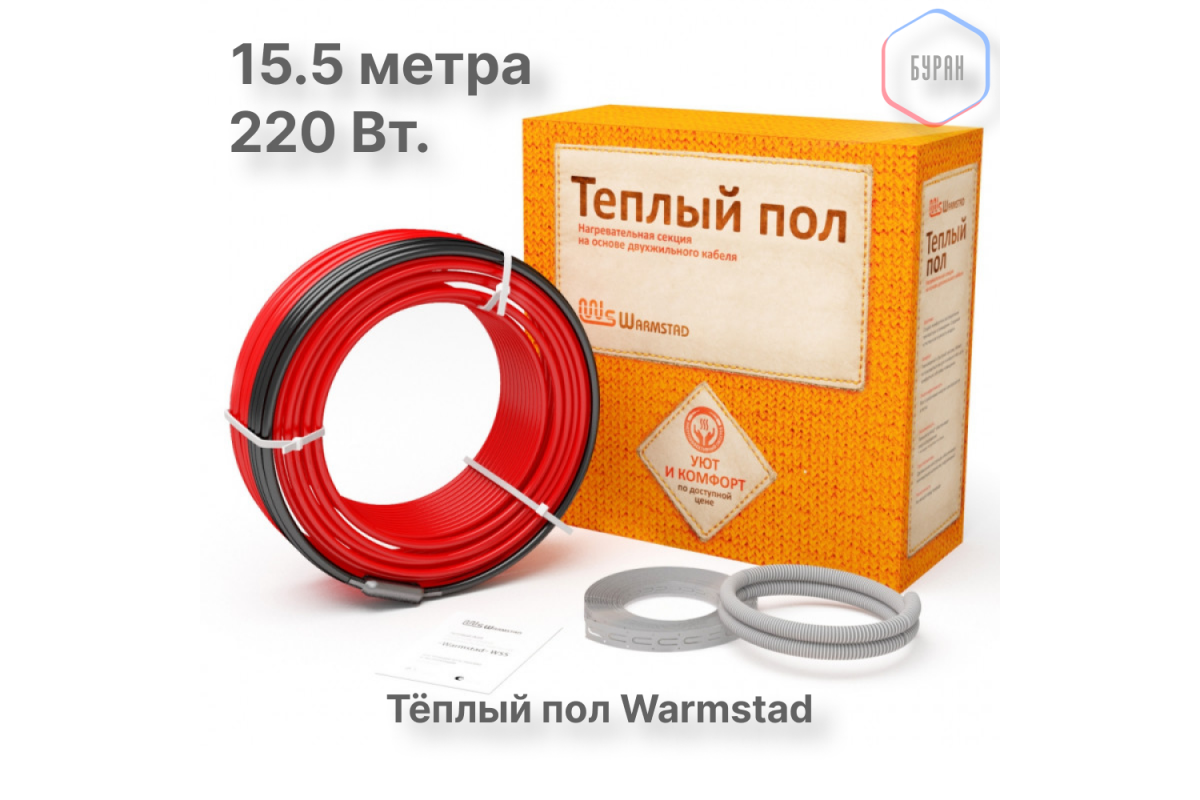 Теплый пол кабельный Warmstad WSS 15,5 м 220 Вт (1.2-1.5 кв.м) — это надёжное и эффективное решение для создания комфортного микроклимата в вашем доме. Его простота монтажа, высокая надёжность и энергоэффективность делают его отличным выбором для обогрева помещений с различными типами напольных покрытий. Приобретая этот нагревательный мат в нашем интернет-магазине, вы получаете качественный продукт с гарантией от производителя и возможность консультации по всем вопросам, связанным с установкой и эксплуатацией системы.​