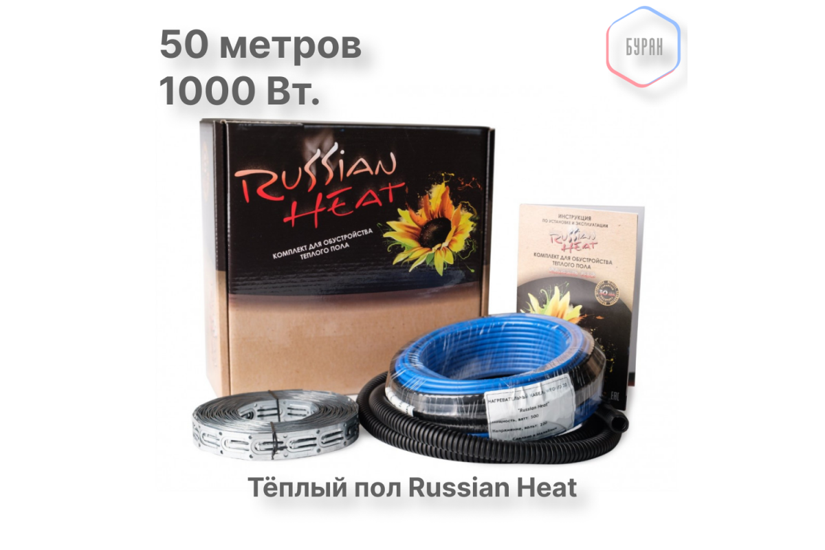 Теплый пол кабельный Russian Heat WFOH/D 1000/20 - 50 м.п.( 10 м.кв.) комплект поставляется в комплекте, готовом к укладке. В состав входят:
