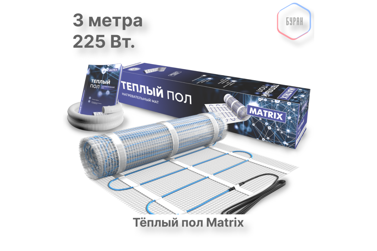 Нагревательный мат теплого пола MATRIX позволит Вам смонтировать теплый пол на площади от 0.5 квадратных метров. Основа из эластичного волокна  дает возможность укладывать мат без особых усилий и придавая нагреваемой площади нужную форму.