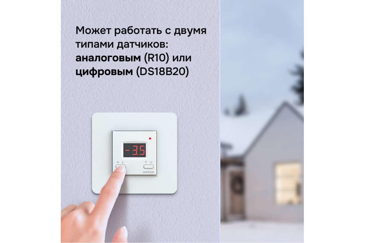 Welrok KT поддерживает работу с аналоговыми (R10) и цифровыми (DS18B20) датчиками температуры воздуха, что позволяет гибко настраивать систему в зависимости от конкретных условий эксплуатации.