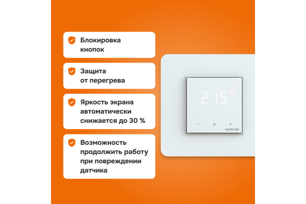 Терморегулятор Welrok lis — это надёжное и функциональное решение для управления системами тёплого пола.Его простота в использовании, энергоэффективность и высокий уровень безопасности делают его отличным выбором для вашего дома. Устройство доступно для покупки в нашем интернет-магазине, где вы также можете получить консультацию по установке и эксплуатации.