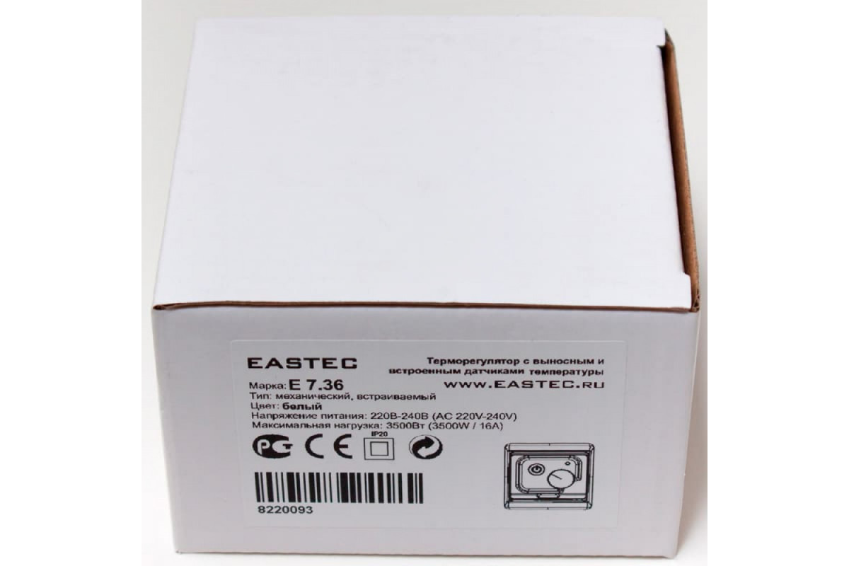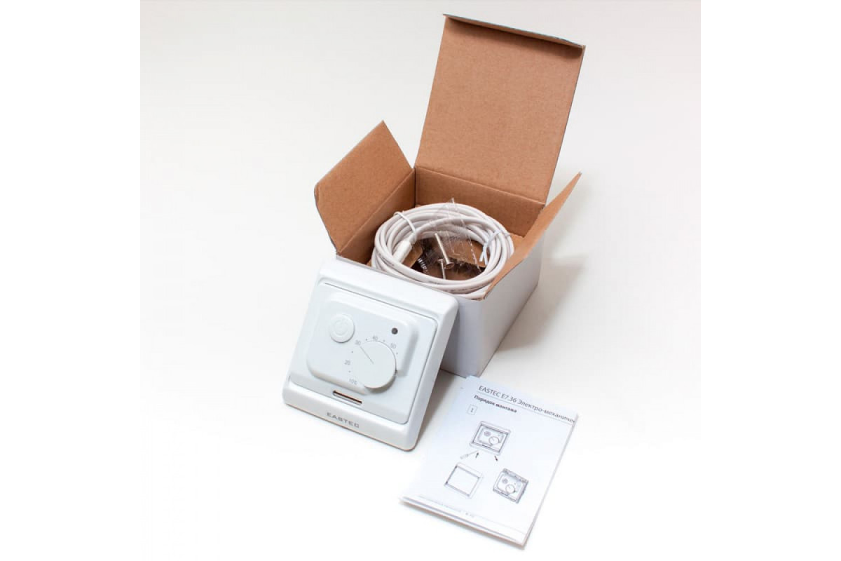 Терморегулятор EASTEC E 7.36 — это механическое устройство управления температурой, предназначенное для систем электрического тёплого пола. Он обеспечивает точную настройку и поддержание комфортного микроклимата в помещении, сочетая простоту использования с надёжностью и долговечностью.