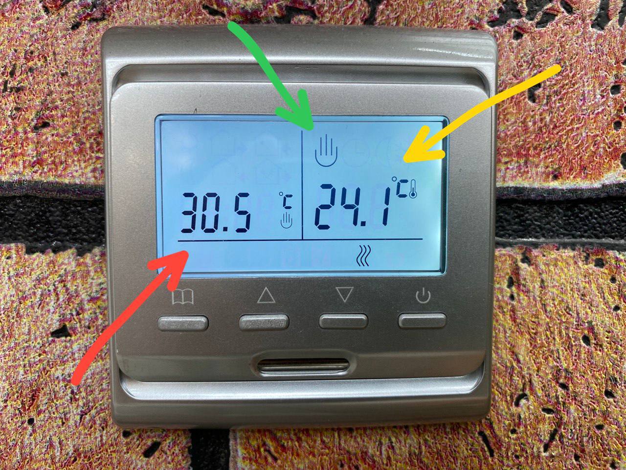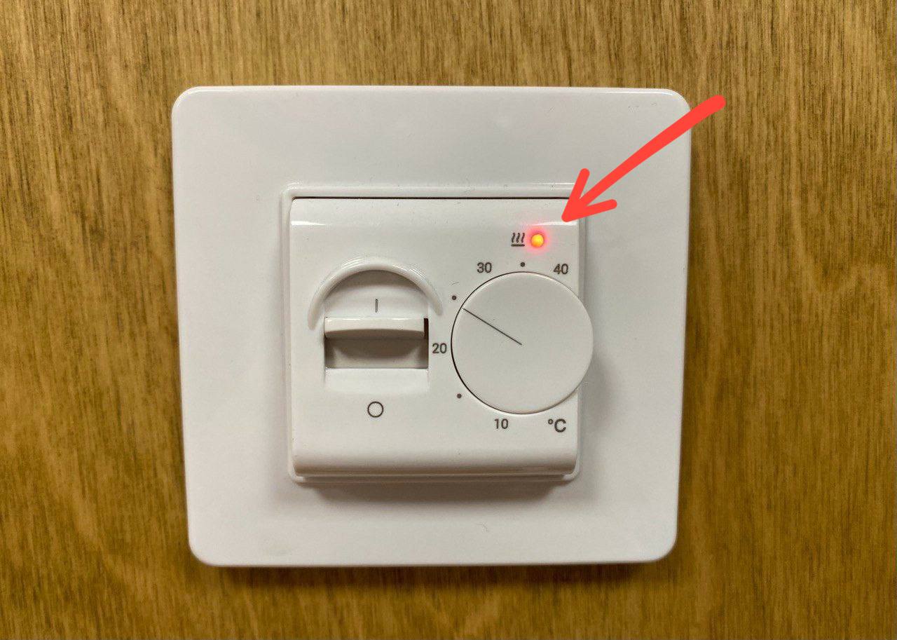 • Индикатор показывающий нагрев (лампочка горит, пол греется).