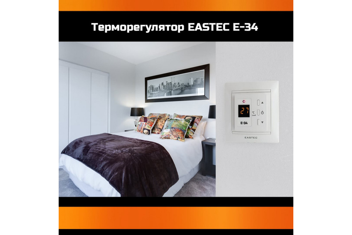 Терморегулятор EASTEC E-34 идеально подходит для установки в различных помещениях, таких как ванные комнаты, кухни, коридоры и жилые комнаты. Он обеспечивает комфортное тепло под плиткой, ламинатом или линолеумом.​
