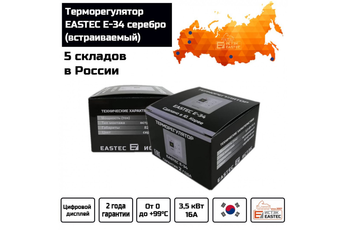 Терморегулятор EASTEC E-34 серебро (Встраиваемый 3,5 кВт)