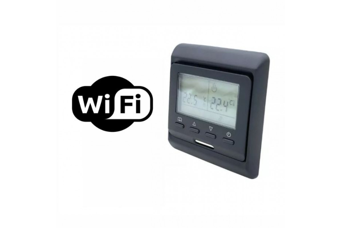 Комнатный программируемый терморегулятор E 51.716 Wi-Fi  с двумя датчиками температуры- выносным датчиком температуры теплого пола и встроенным датчиком температуры воздуха. Встроенный монтаж.