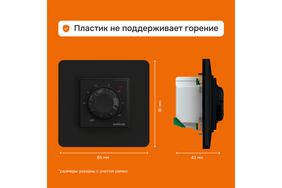 Welrok RTP BK оснащён механическим регулятором температуры, что обеспечивает интуитивно понятное управление без необходимости программирования. Пользователю достаточно установить желаемую температуру с помощью поворотной ручки.​