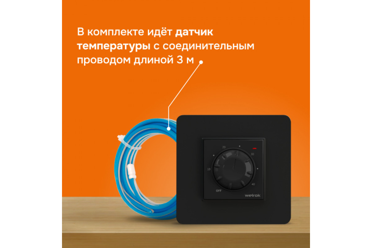 Для эффективной работы системы тёплого пола важно правильно выбрать терморегулятор. Welrok RTP BK обеспечивает стабильную работу при температуре окружающей среды от -15 до +45 °C. Выносной датчик температуры пола позволяет точно контролировать нагрев, предотвращая перегрев покрытия.​