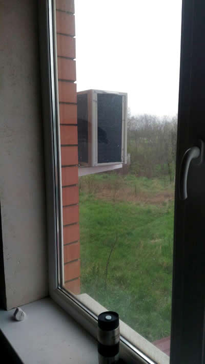 Был один нюанс, который решали с заказчиком. Это выбор места расположения внешнего блока кондиционера для первого этажа. На фото видно где он находится. Решение неоднозначное, но на работу прибора это никак не отражается.