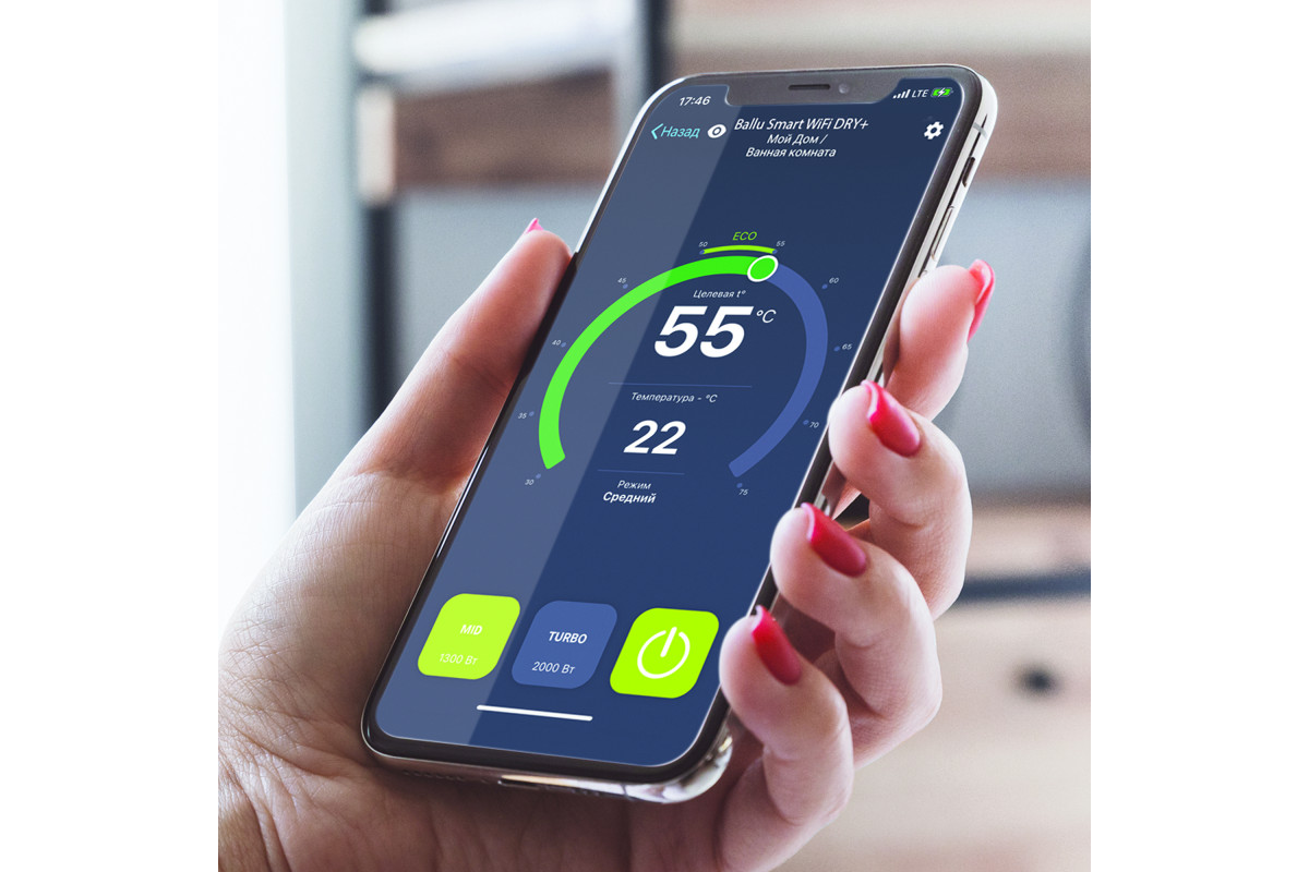 Управление через Wi-Fi — настройка температуры, таймер включения и режимы работы доступны прямо с телефона.