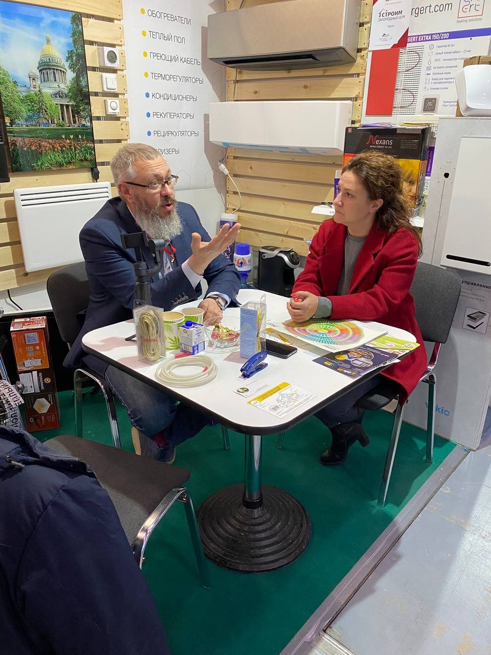 Что касается самой выставки. В очередной раз нам обещали около 18 000 человек, но по ощущениям цифра была в три раза меньше. Интерес к нашему стенду был особенный. На фоне строительной недвижимости мы стояли оазисом климатического оборудования. Каждый третий посетитель так или иначе обращал внимание на наш стенд. Основной интерес был в отоплении собственных домов по средством тёплых полов. Основной поток посетителей именно на этапе выбора жилья, сразу же рассматривал варианты отопления. Большинство полагается только на электричество. Газ до сих пор остаётся очень дорогим и достаточно нерентабельным источником энергии. Проблемы с его подключением аналогичные везде. Что в Сибири что в Северной столице. А вот люди и там и там хотя тепла и энергоэффективности. Тут мы были в ударе. Опыт в электрическом отоплении, фотографии объектов. Все давало нашим будущим клиентам тонны полезной информации.