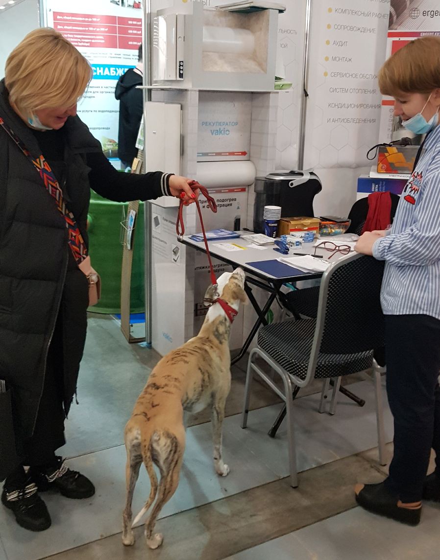 И как приятно, когда первый посетитель – пёсель-победитель! На юбилейную международную выставку «Строим Дом», посвященную строительству, ремонту и дизайну, к нам пришёл Мартин породы левретка со своей хозяйкой. В «Экспофоруме» одноременно проходила выставка «Город собак. Весна 2021» и Мартин занял 1 место. Поздравляем и ждём Ирину за кондиционером !