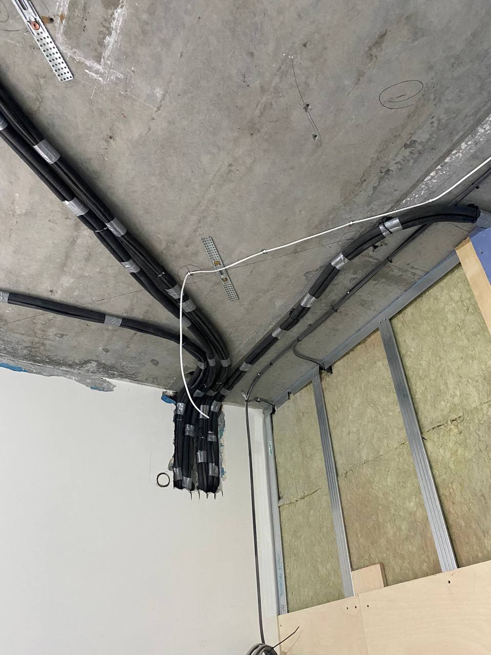 На втором этапе монтажники установили надёжные крепления для магистралей и подготовили электрические соединения. Важным моментом стала прокладка кабелей для управления системой. Все проводники были тщательно заизолированы, чтобы обеспечить безопасность эксплуатации и защиту от короткого замыкания.