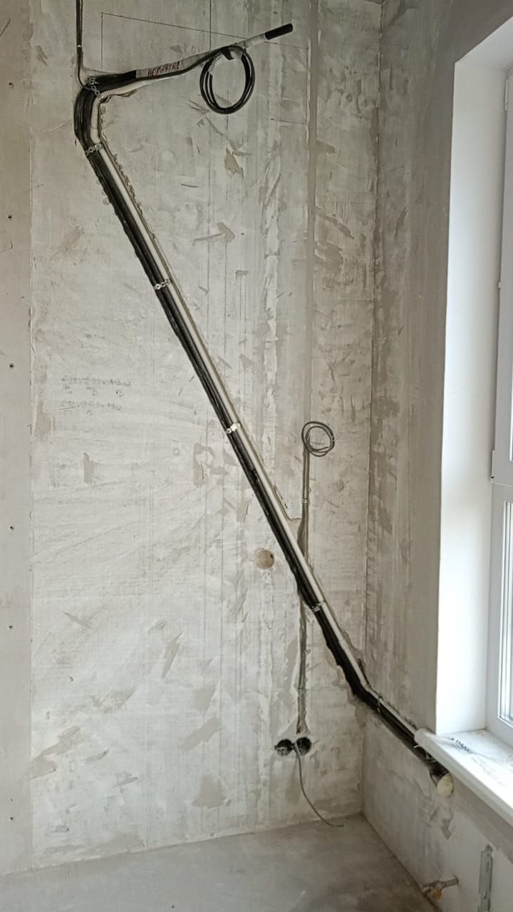 В случае нашего клиента Владимира, который приобрел квартиру на проспекте Комсомольском в Томске, квартира с черновой отделкой стала идеальной площадкой для выполнения монтажа в два этапа. Черновая отделка позволяет спрятать трассу в стенах, что улучшает эстетический вид помещения.